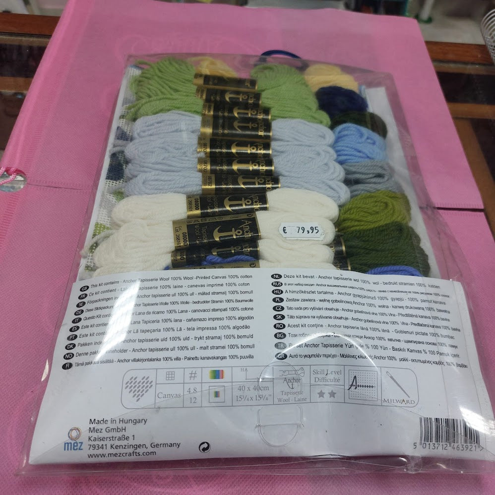 - Este kit contiene Lana tapicera Anchor 100% lana, y cañamazo impreso 100% algodón.